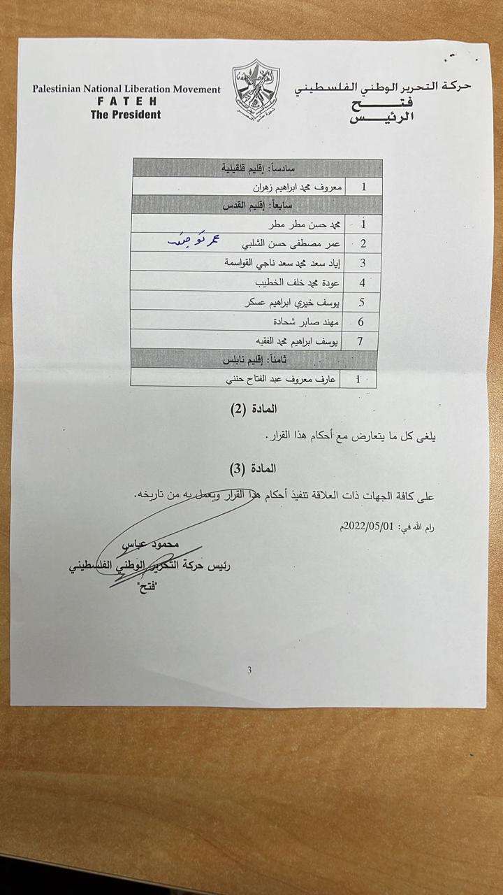 “ان ما يجري من خلال هذه القرارات ضد جزء من خيرة ابناء الحركة ومناضليها يهدف بالاساس لتعزيز سيطرة فئه غير حريصه على الحركه ومصالحها من خلال تضليل أصحاب القرار وذلك بهدف التغطيه على قصورهم وبعدهم عن القاعده والكادر الفتحاوي وتفردهم بالقرار واقصاء كل من يخالفهم”.